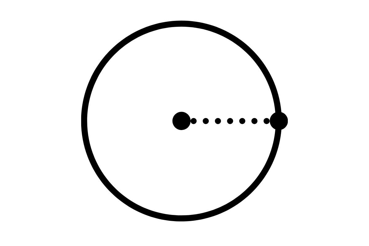 - Średnica to odcinek przechodzący przez środek koła, łączący dwa przeciwległe punkty na obwodzie.
